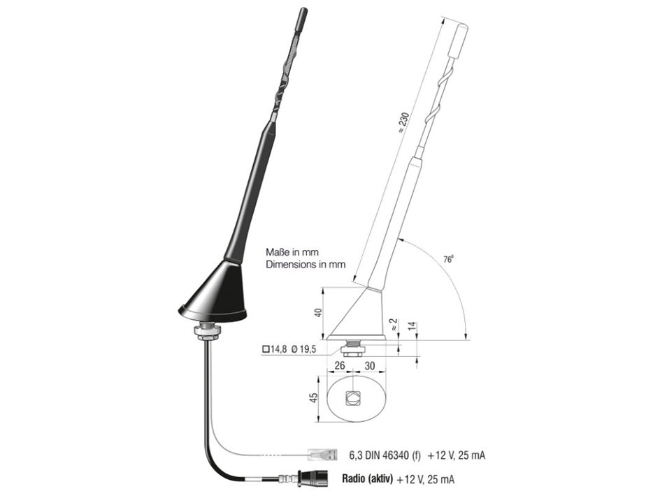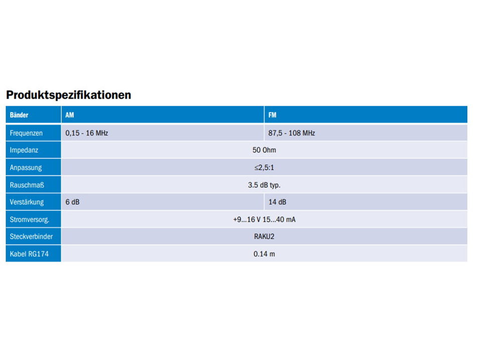 16V Antenne aktiv - FM, 23 cm, mit Raku 2 Anschluss