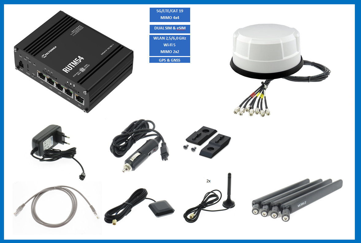 - 4 x Mobilfunk-Antennen (schwenkbar, SMA-Stecker)