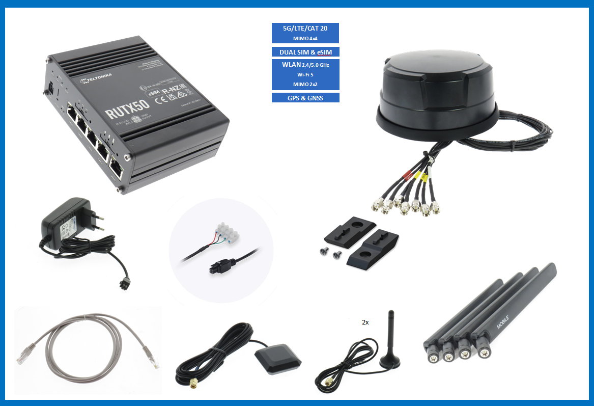 - Teltonika 5G Router RUTX50B mit Originalzubehör, siehe weiter unten