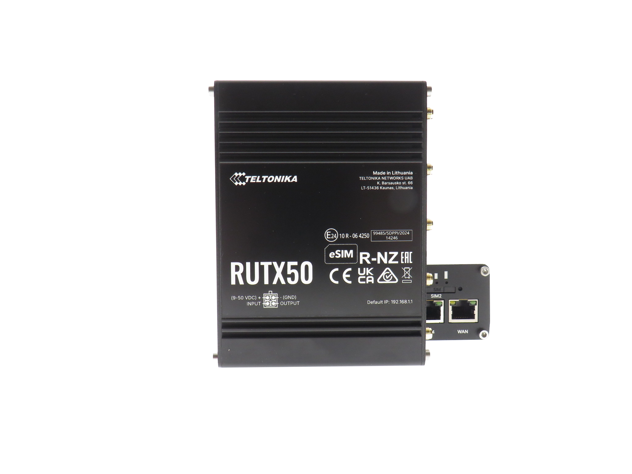 Der RUTX50 ist ein zukunftssicherer Multinetzwerk-Industrierouter, der 5G-Mobilkommunikation für Hochgeschwindigkeits- und datenintensive Anwendungen bietet.