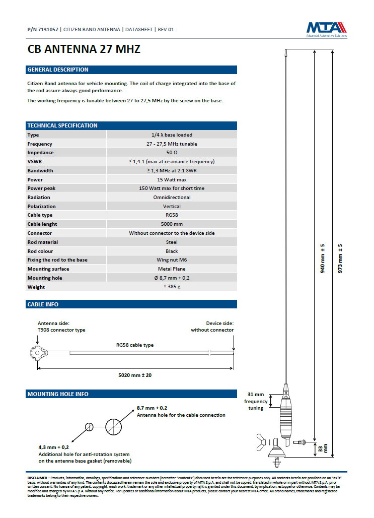 Hersteller: MTA S.p.A., V.le dell'Industria, 12 - 26845 Codogno (LO) – ITALY, info@mta.it