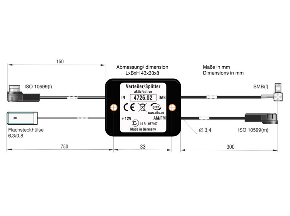 - Konnektoren: SMB(f), ISO 10599(f), ISO 10599(m)