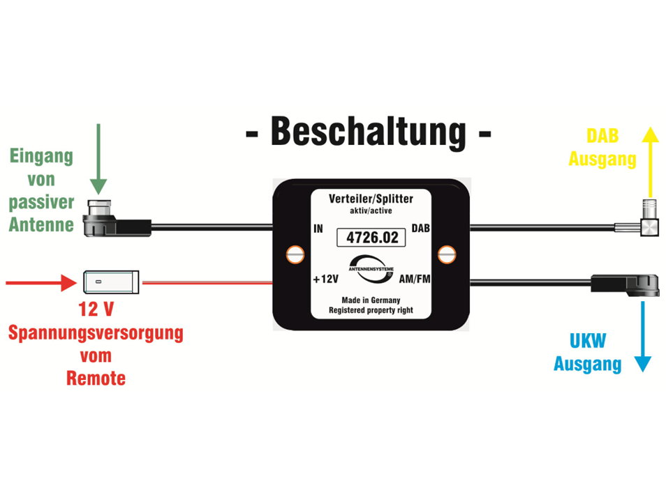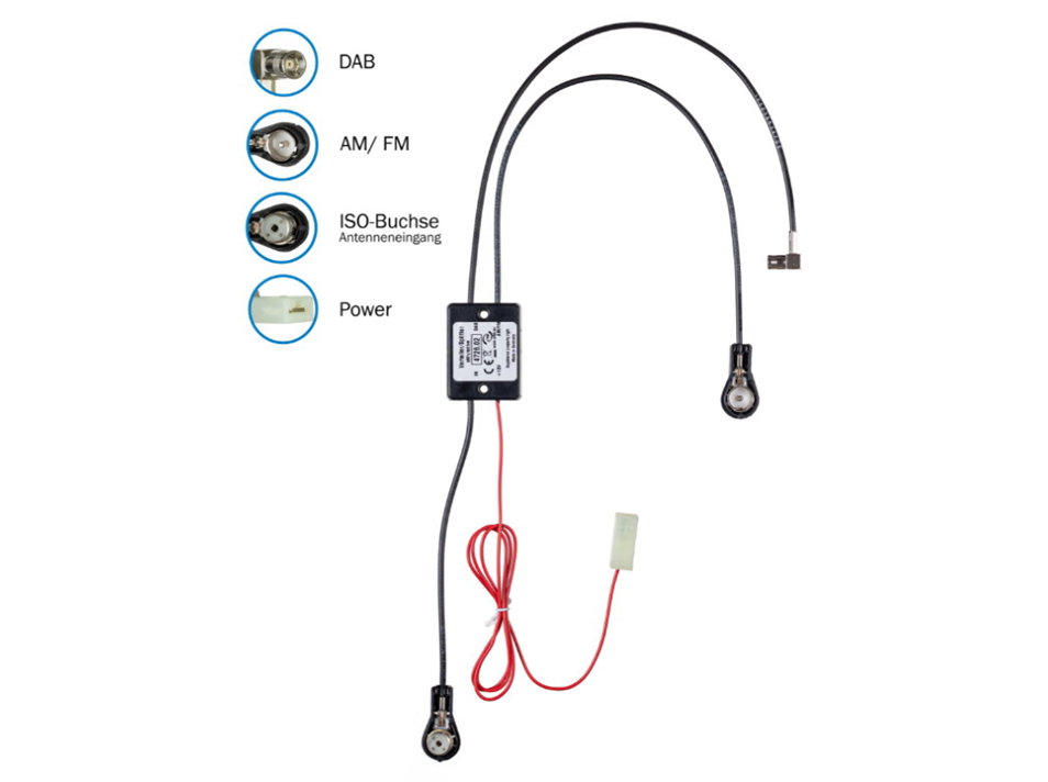 Die besten Ergebnisse werden erzielt, wenn der Splitter mit einer passiven Antenne FM/UKW/DAB kombiniert wird: