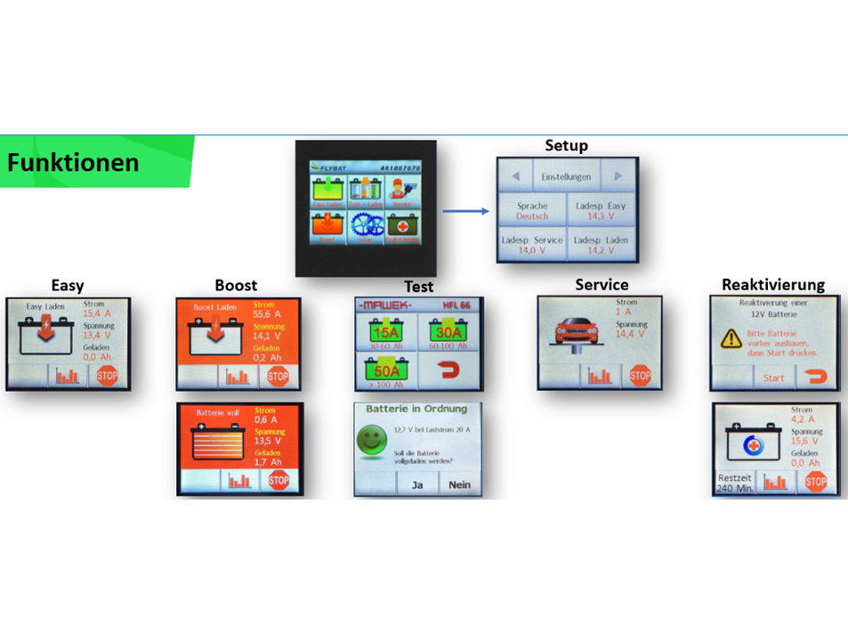 - einfachste Bedienung, keine komplizierte, fehlerbehaftete Eingabe von Batteriedaten notwendig