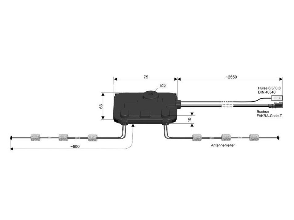 - Die Betriebsspannung wird über eine separate Versorgungsleitung der Antenne zugeführt