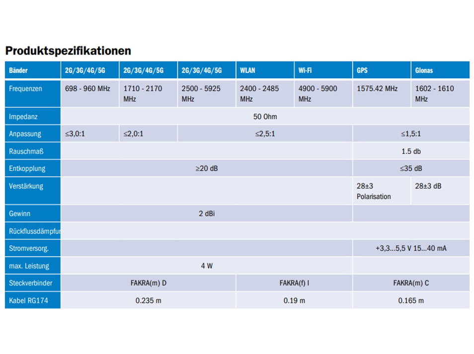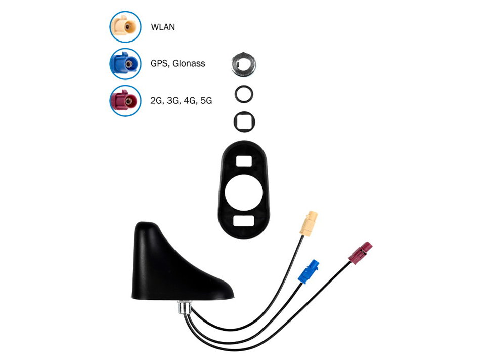 Die ATTB 3794.01 Multifunktionsantenne deckt mehrere Frequenzbänder und damit Kommunikationsdienste ab. Darunter 5G, GNSS (GPS, GLONASS) und WLAN.