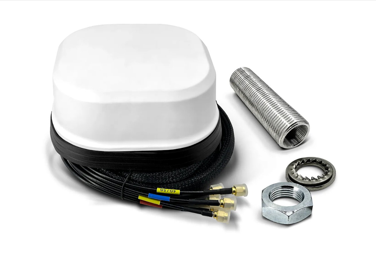 Außenantenne mit 4 Kabel für 5G / 4G LTE Mobilfunk, 2 Kabel für WLAN und 1 Kabel für GPS.