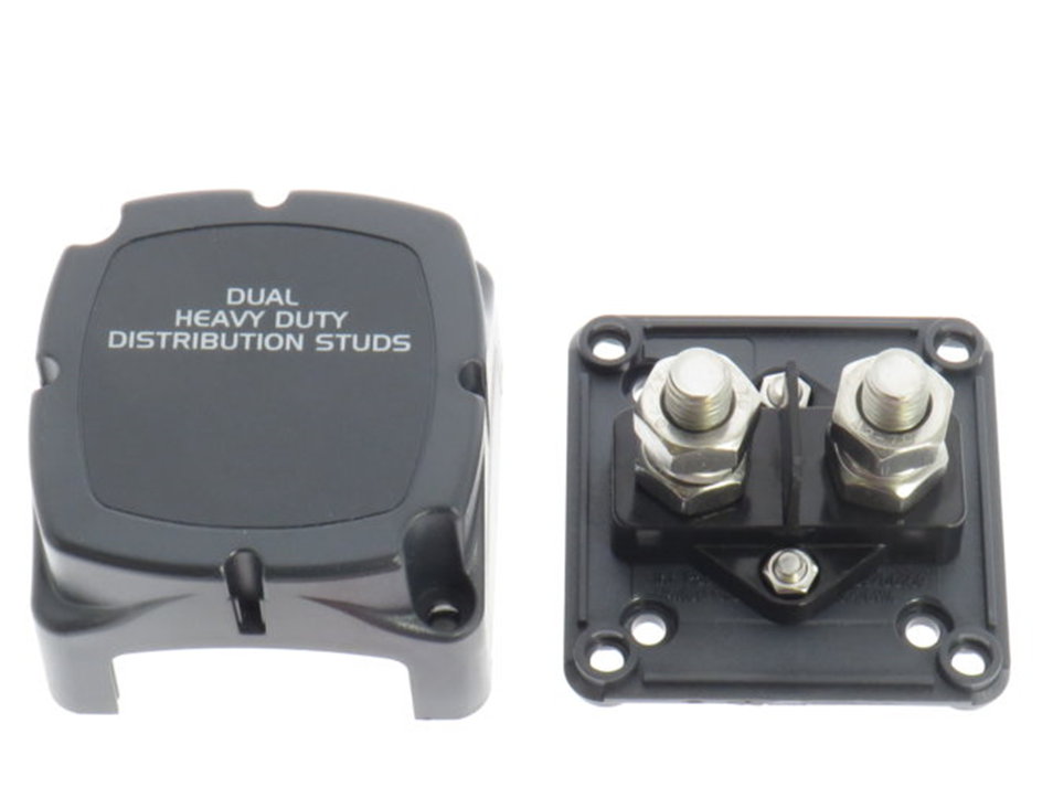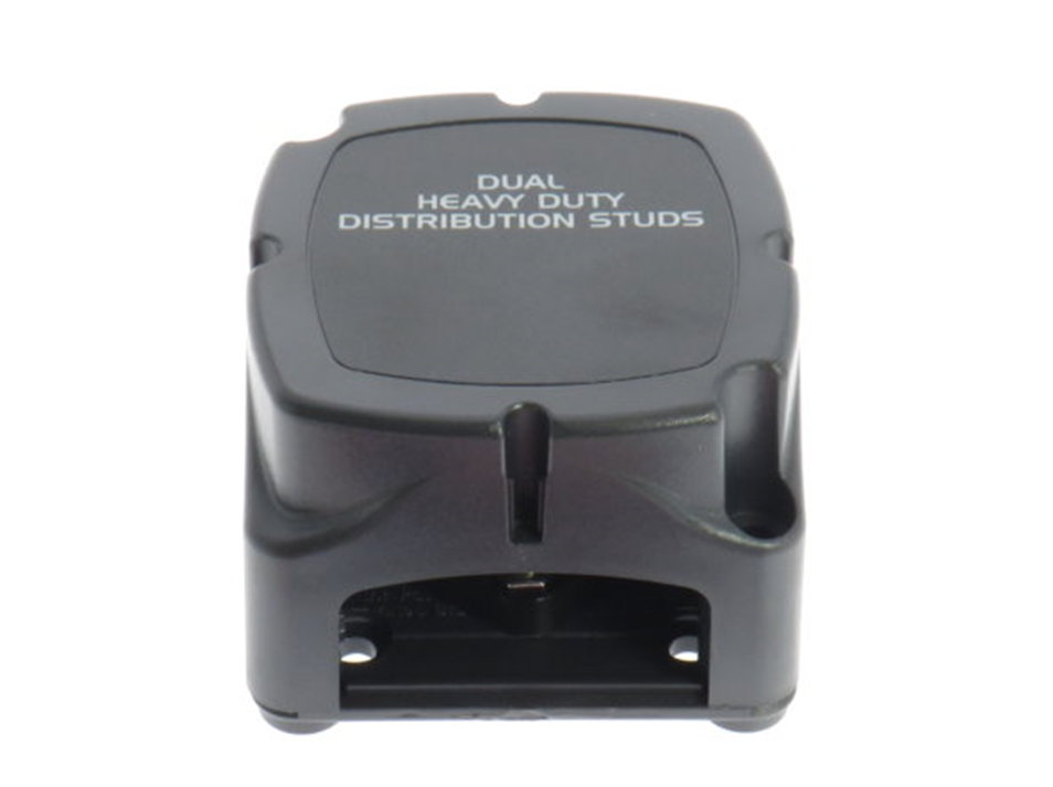Der Verteilerblock ermöglicht den Anschluss bzw. die Verteilung von Plus– und Minuskabeln in einem Gehäuse. Die Seitenwände sind herausnehmbar und steckbar, sodass die Kabel von allen Seiten eingeführt werden können.