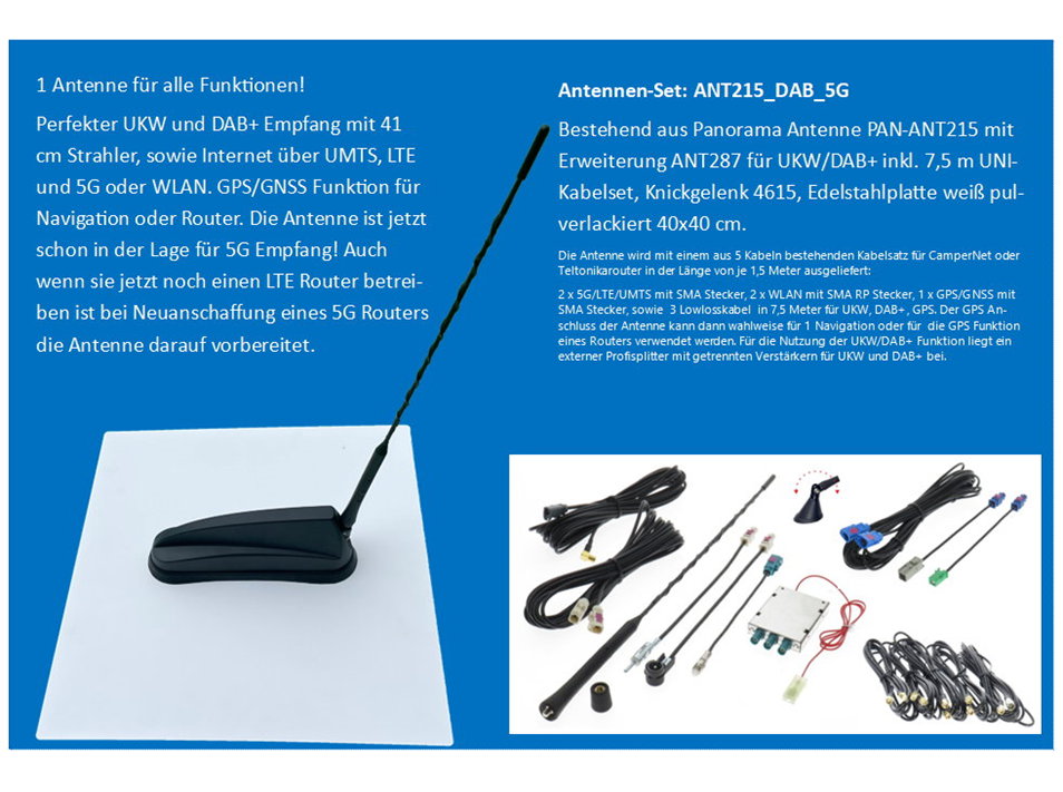 2xLTE/5G/2xWLAN/GPS/FM/DAB+ Shark antenna 1.5m/7,5m
