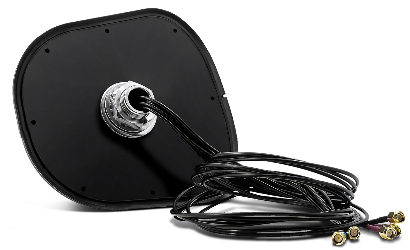Die Antenne zeichnet sich aus durch 4 Empfangselemente (MIMO 4x4) für LTE/5G und 3 Empfangselemente für WI-FI (MIMO 3x3) und ein Empfangselement für GNSS aus.