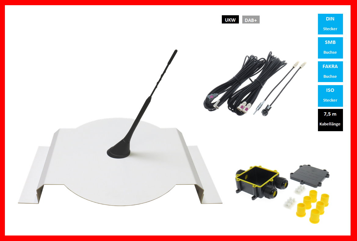 The antenna A10 is, according to our tests, at the moment the best antenna for optimal radio reception in camper van. The electronics, the antenna radiator and the antenna supports are perfectly matched to each other. For vehicles where the height does not matter, we always recommend the 23 cm antenna radiator. You will be thrilled!