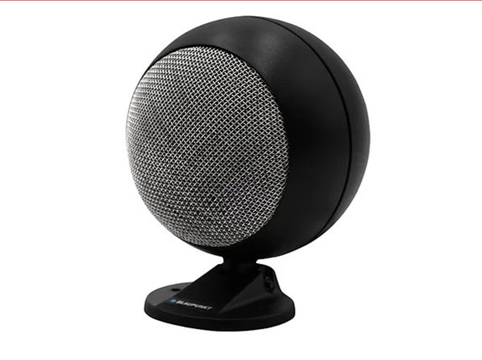 The enclosure of the spherical speaker is made of high-quality plastic; matte black, non-reflective, scratch-resistant, insensitive to UV rays and dimensionally stable.
