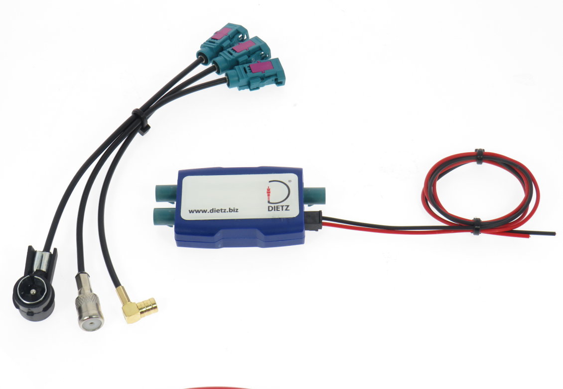 Premium Aktivsplitter der neuesten Generation. Generiert entweder aus einer passiven UKW Antenne zusätzlich ein DAB/DAB+ Signal oder aus einer aktiven UKW Antenne zusätzlich ein DAB/DAB+ Signal, wenn die aktive Antenne nicht durch einen Filter das Frequenzband auf nur UKW begrenzt. Es gilt je älter das Fahrzeug, desto eher generiert der Splitter das DAB+ Radiosignal.