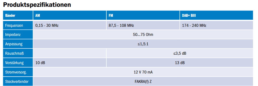 - Konnektoren: Fakra Buchse (f), Z-codiert