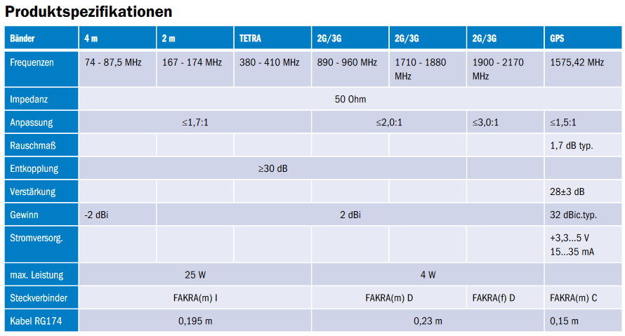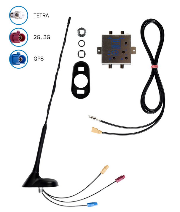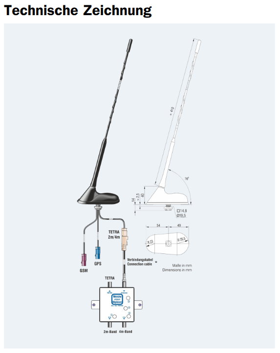 Kombiflexantenne 4m/ 2m/ TETRA/ GPS/ GSM, incl. abst. Weiche (4m breitbandig)