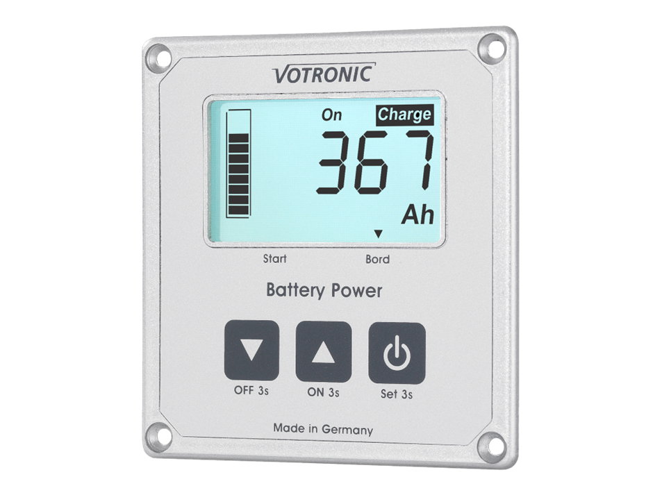 How much residual charge does my on-board battery actually have left? Is the battery really full? Why is energy being drawn from the battery despite consumers being switched off? The VOTRONIC LCD Battery Computer S answers these questions to the exact percentage (%) and ampere-hour (Ah). At the push of a button, it provides comprehensive information about the current state of charge of the battery, the flowing battery currents and the voltage level of the battery. The LCD Battery Computer S is based on the tried and tested VOTRONIC LCD Battery Computer. The versatile, easy-to-use display functions have been extended by a white illuminated, clear LCD display, which is very easy to read even from a great distance and in unfavourable lighting conditions.