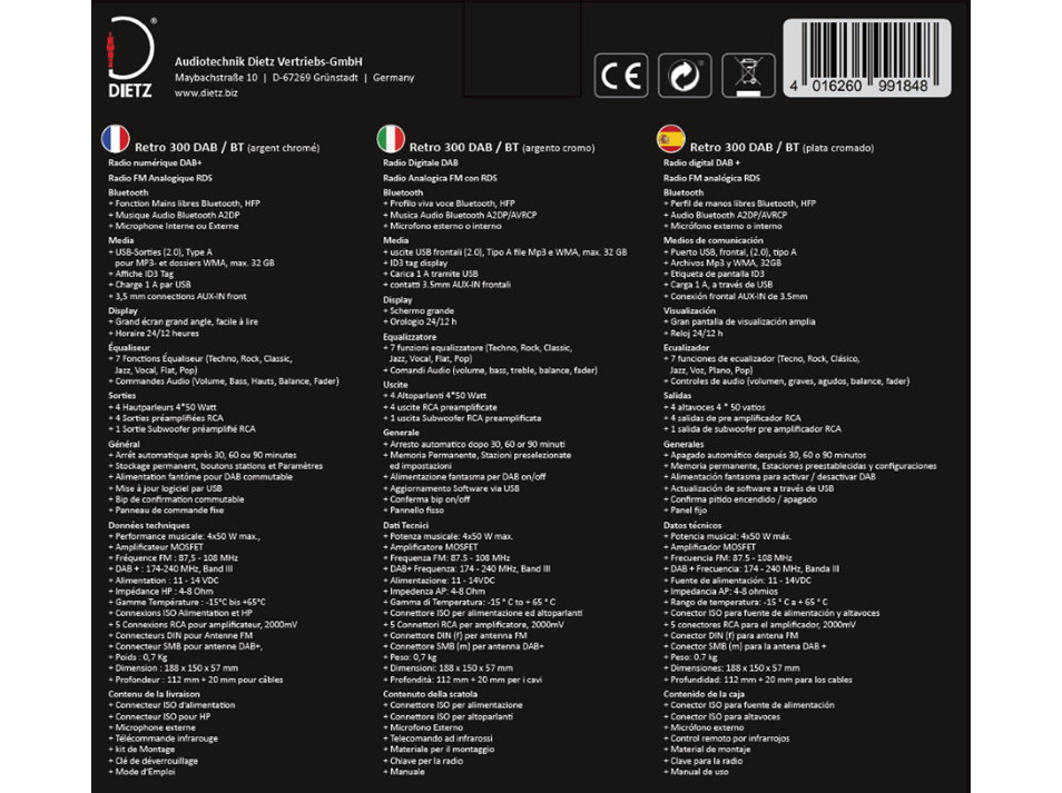 RETRO Radio CD, MP3, USB, SD, RDS, AUX, chrom