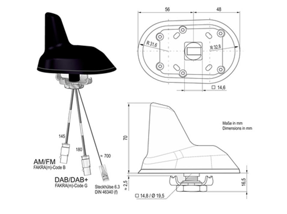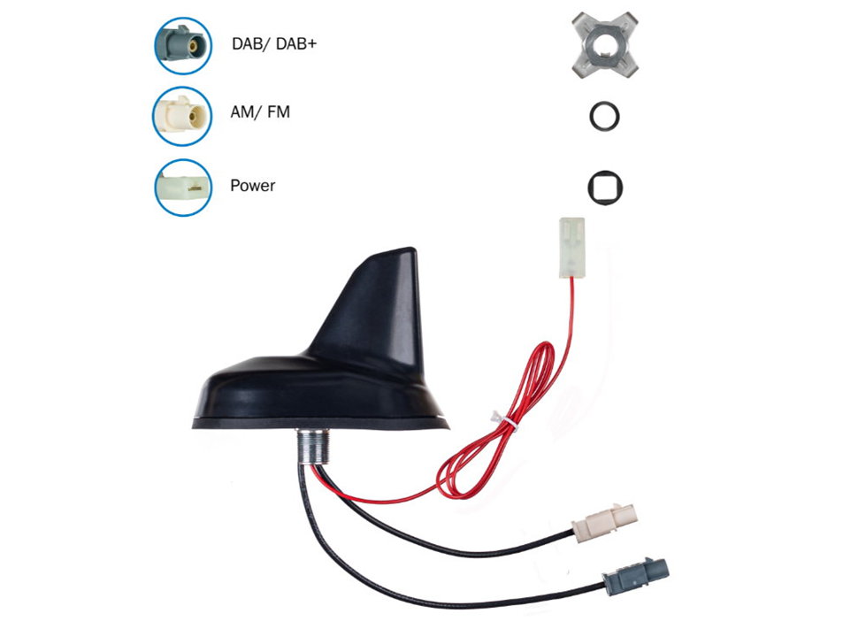 - Category/special feature: active Sharkfin antenna with separate signal routing, for VW/Audi, MB, phantom or external power supply